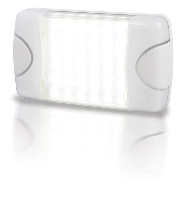 HELLA Surface Mount Strip Lamp Without SwitchThe Hella surface mount strip lamps with 12 bright LEDs with 250 LUM are fully waterproof and draw <3W. They are an ideal replacement for fluoro fittings. No switch. 5Y warranty. Cool or warm white, 12 or 24V. Light is brighter than courtesy strip light above. 283 x 25mm.