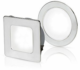 HELLA EuroLED95 Recess Mounted LED LightsThe smooth diffused lens creates a comfortable and uniform appearance with over 420 lumens of actual light in a broad and even illumination. The super low profile trim is available in both square and round shapes, made of marine grade 316 stainless steel and highly polished to super yacht standards. Square spring clip 78mm cut diameter 72mm, intrusion 26.4mm.