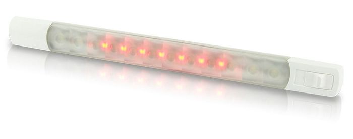 HELLA Surface Mount Strip Lamps With SwitchHella surface mount strip lamps as above, but with an innovative waterproof magnetic switch. Completely sealed, UV and corrosion resistant and an ultra-low profile, these lamps are easy to install and ideal for interior or exterior applications. Available in cool or warm white, plus options with dual colour with combinations of warm or cool white and red or blue LEDs, 12 or 24V. 283 x 25mm