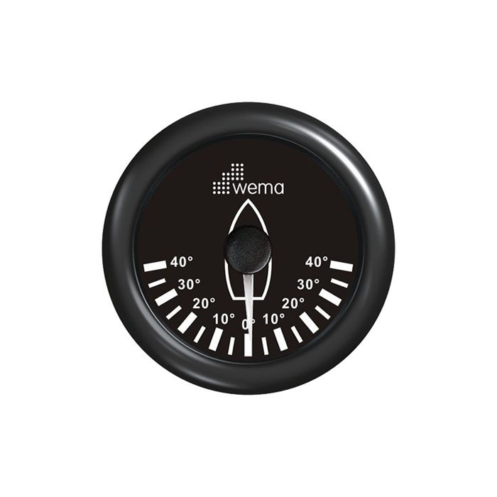 Rudder Angle WEMAThe Rudder Angle Gauge shows the rudder position at all times. Accurate indication of the position of the steering rudder is extremely important when navigating through tight and crowded waterways. 52/85mm diameter available with black and stainless steel bezel.