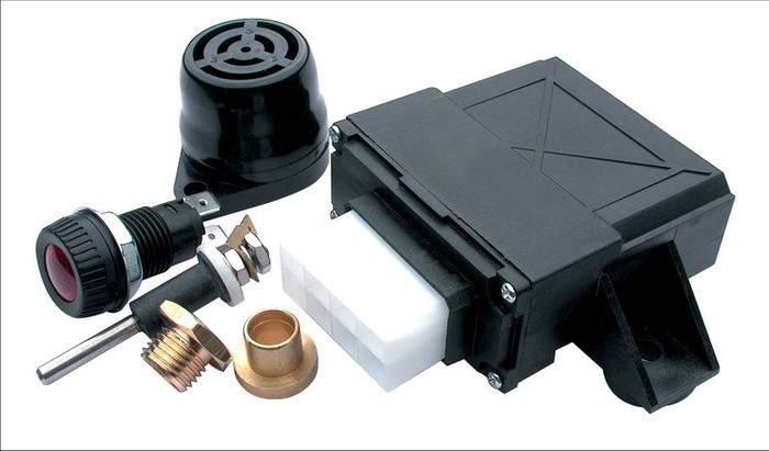 VDO Low Water Level AlarmThe VDO low water level alarm warns within seconds when the water level falls below the level of the probe. Kit includes ss probe, M14x1,5 adaptor, soldering bush, electronic module, warning light and buzzer.
