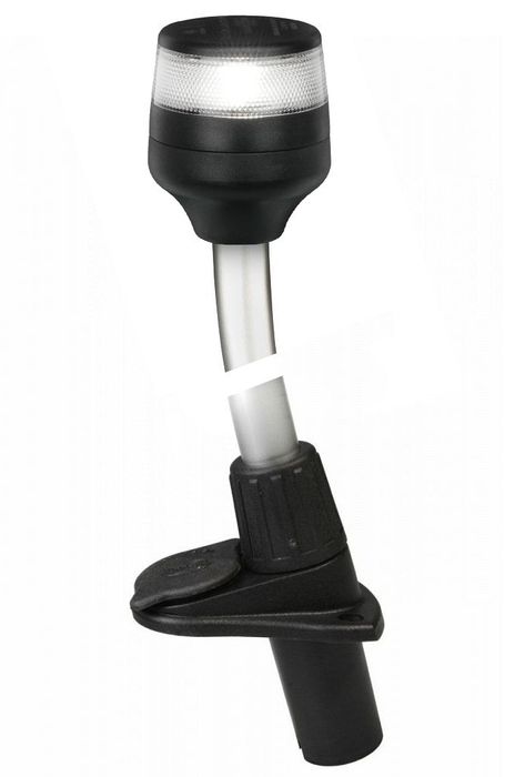 HELLA NaviLED 360 Anchor LightThe Hella Naviled360 flange mounted anchor light is rated IP67 and draws less than 1W. Certified visibility is 2 nautical miles – it can be used on vessels up to 50m long. Available with black or white housings. The light is fitted by twisting onto the d60mm base that is screwed to the horizontal mounting surface. Height 56mm.