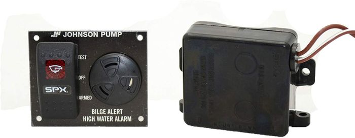 SPX Johnson Pump Bilge-Alert Bilge AlarmThe SPX Johnson Pump Bilge-Alert high-water bilge alarm consists of an Ultima switch and an in-dash panel that features both a visual and audible 100 db alarm that is activated after a delay of 3 seconds after being exposed to water. The double throw rocker switch on the panel allows the alarm to be armed, turned off or tested. This unit enables an unmanned compartment to be constantly monitored. For additional compartments, add additional float switches. Panel dimensions 73mm x 60mm, intrusion 60mm. For details of the Ultima high water level switch see 701106.