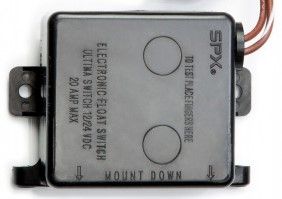 SPX Johnson Pump ULTIMA Bilge SwitchThe ULTIMA Bilge Switch uses two patented Mirus™ field effect detector cells. Mirus™ dector cells are composed of an active device and an electrode surrounded by a second electrode. The applied circuit creates an electric field around the cell. When a dielectric material such as bilge water interrupts the field the active device triggers a signal. Detector cells are totally sealed, are never in contact with the water, will not corrode and are not affected by oil or foreign debris. The sensor is very easy to mount, to either the horizontal base or against a vertical surface. ULTIMA activates at a 50 mm fluid level and deactivates at a 20 mm fluid level. An eight second delay prevents false starts. ULTIMA switch is rated to handle all Johnson Pump submersible pumps drawing up to 20 A at 12 or 24 volts. It is also used for the BilgeAlert high water alarm.