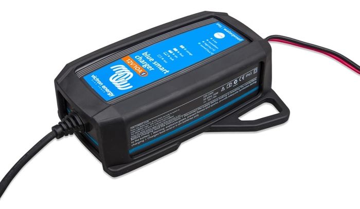 VICTRON Blue Smart IP65 ChargersSingle output, water and dust resistant IP65 rated battery chargers. Seven step smart charge algorithm and recovery mode for fully discharged batteries. Automatically turns on and off as required, with low power mode to charge smaller batteries. Includes Li-ion battery mode option. Setup and configure, readout of voltage and current by Bluetooth Blue Smart App.