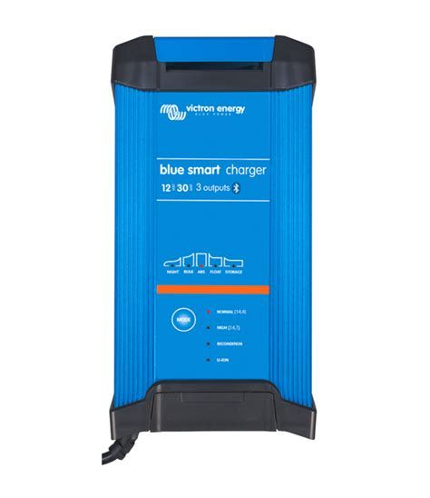 VICTRON Blue Smart IP22 Battery ChargersThese fully automatic battery chargers are designed to be mounted in dry areas. The wireless Bluetooth Smart solution monitors voltage and current and enables settings to be changed and to update the charger when new features become available. With up to 94 % efficiency, these chargers generate up to four times less heat when compared to the industry standard. And once the battery is fully charged, power consumption reduces to 0,5 Watt. The Blue Smart Charger features a microprocessor controlled ‘adaptive’ battery management, that will automatically optimize the charging process relative to the way the battery is being used. Fully programmable charge app allows changing practically all parameters and time limits used by the charge algorithm. Also charges Li-ion. When in NIGHT or LOW mode, the output current is reduced to max. 50 % of the nominal output and the charger will be totally noiseless. VE.Smart capable, a wireless device to device communication network between Victron products, using Bluetooth Smart.