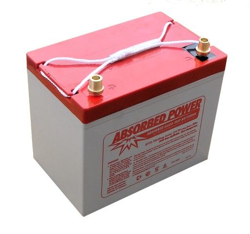Absorbed Power AGM BatteriesAbsorbed Power Absorbed Glass Mat batteries are manufactured in China and have over the years built up a reputation for quality and durability. 2 year exchange warranty. on 75Ah battery,M6 threaded boss, on all others, M8 threaded boss terminals. SAE posts.are available to be seperately ordered.