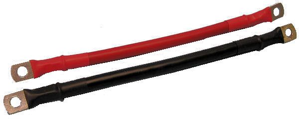 Battery CablesBattery cables, ready made-up. Best practice, 32mm? tinned cable with crimped-on tin-plated copper lugs and silicone-glued double wall heatshrink. Why settle for less? Custom lengths and different lug hole sizes can be made to order.