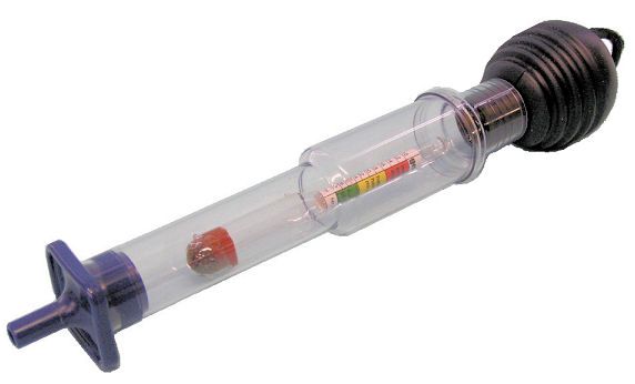 HydrometerHydrometers measure the specific gravity of the electrolyte, giving an indication of the battery state of charge. German GEFO battery hydrometers are made with polycarbonate bodies making them virtually indestructible in normal use.