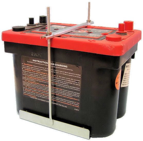 Battery Tie-down, Stainless SteelBattery tie-down, stainless steel. 5mm bolts and wing nuts. Max battery size 225mm high x 190mm wide.