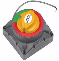 BEP Voltage Sensitive Motor Driven Battery SwitchThese Voltage Sensitive Switches automatically sense connected battery bank voltages and provide optimal, efficient charging of the second bank. The VSS allows for independent battery banks to be combined or isolated based on the presence of a charging source such as an engine alternator or battery charger, while also offering remotely activated, high current, emergency parallel connection. Designed and constructed for longevity in the marine environment with tinned copper conductors, stainless steel nuts, and high temperature, fibre reinforced plastics. The units are ignition protected, provide On/Off switching operation, and may be recessed or surface mounted. The remote emergency parallel function can be operated through a momentary button on the dash which will parallel the batteries for 10 minutes. Once this 10 minutes has passed, if the voltage is high enough, the voltage sensitive switch will stay engaged. If not, it will disengage. Dual battery sensing, manual override option.