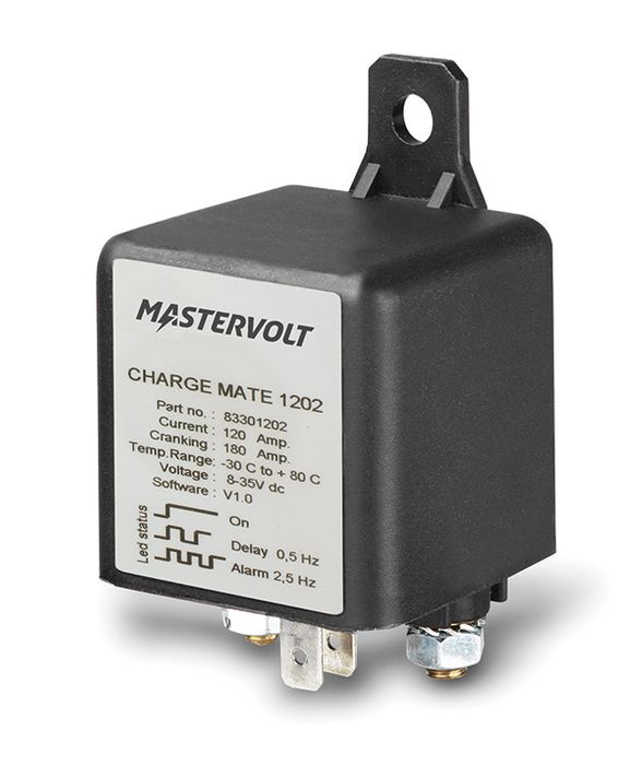 MASTERVOLT Charge Mate 1202 Voltage Sensitive RelayThe Mastervolt Charge Mate 1202 is an automatic battery relay which connects two battery banks when the voltage rises above a pre-set value