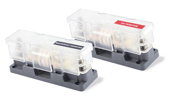 BLUE SEAS MRBF Fuse BlocksAccommodates three MRBF fuses for consolidated high amperage circuit protection Ideal for 3 output battery chargers Clip-on insulating cover satisfies ABYC/USCG insulation requirements Versatile wiring options allow all wires to come out a single side Label recesses accommodate Blue Sea Systems Square Format labels for easy circuit identification One-piece stainless flange nuts ensure safe and secure connections Fuses sold separately.