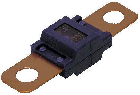 ANL or Lift-truck FusesANL or lift-truck fuses protect high current circuits. Made in Germany . Window allows fuse checking. Swing out bolt connections allow fuse changing without removing fasteners or cable. Dim 82x19x11mm for studs d10mm @ 60mm pitch.