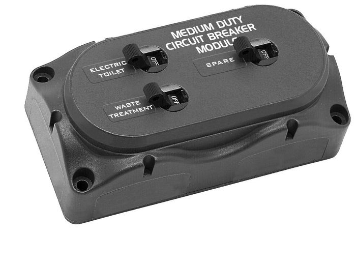 3 Circuit Breakers in BEP Contour hsngThe BEP 707 Circuit Breaker Module has 1x50A & 2x25A breakers to separate loads like waste systems and toilets from the main DC panel, avoiding voltage spikes.Ratings can be changed. 138mmx69mmx75mmH