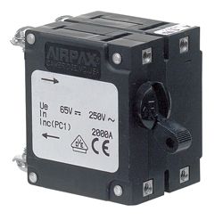 Double Pole AIRPAX A-Frame Circuit Breakers for BEP AC&DCpanelsAIRPAX double pole hydraulic magnetic circuit breakers have the same properties as the single pole breakers above. One actuator for both poles. Cut d16mm 51mmHx39mmWx52mmD.