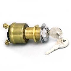 COLE-Hersee Ignition and Starter SwitchQuality COLE-HERSEE M-550 ignition & starter key switch. 3 positions off-ignition-start, brass housing, brass screw terminals & chromed face nut. 12V 10A ignition/5A start. Cut d21mm. Panel 25mm max.
