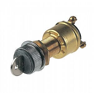 COLE-HERSEE Key SwitchCOLE-HERSEE M-489 premium quality key witch. 2 positions - off-on, no start position, brass housing, brass screw terminals and chromed face nut. Rated 12V 10A.Cut d22mm, panel 25mm max. Intrusion 70mm, body d37mm.
