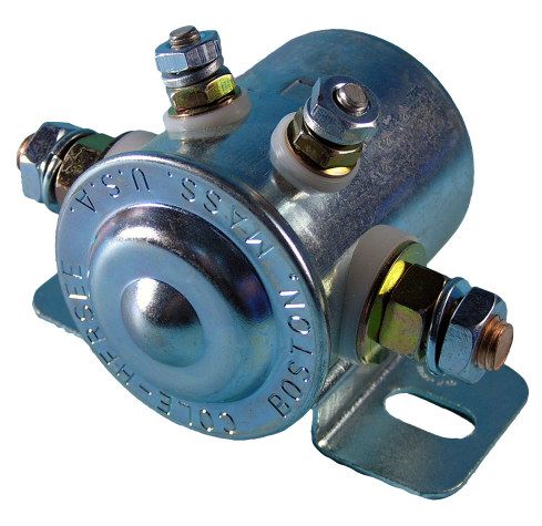 COLE HERSEE Can SolenoidsSolenoids, also known as contactors, perform the same function as a relay. Ratings are continuous. Silver contacts have greater durability. Oil filling inhibits arcing, units must be mounted with the terminals down to immerse contacts.