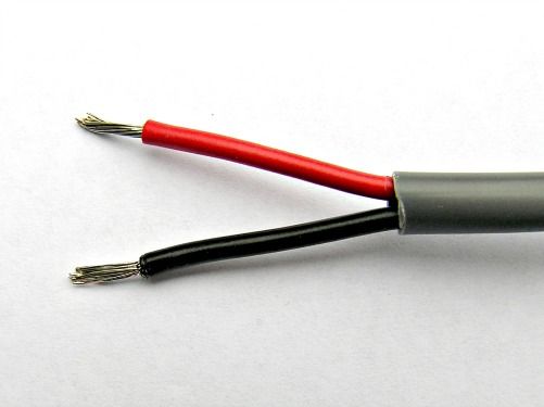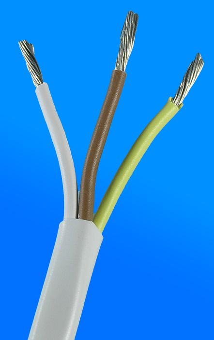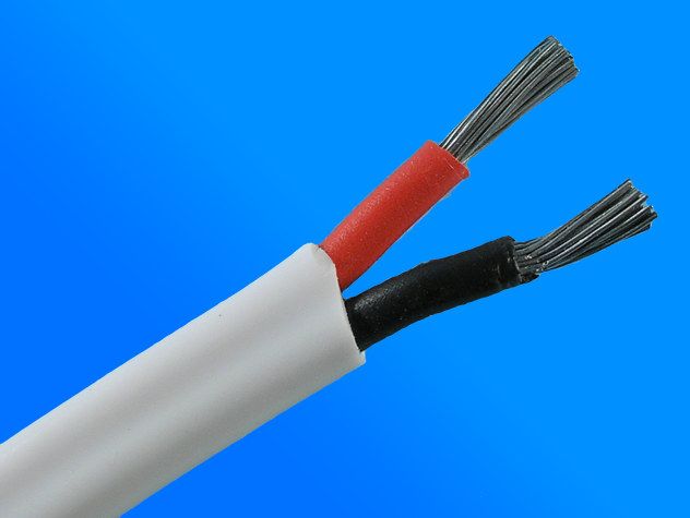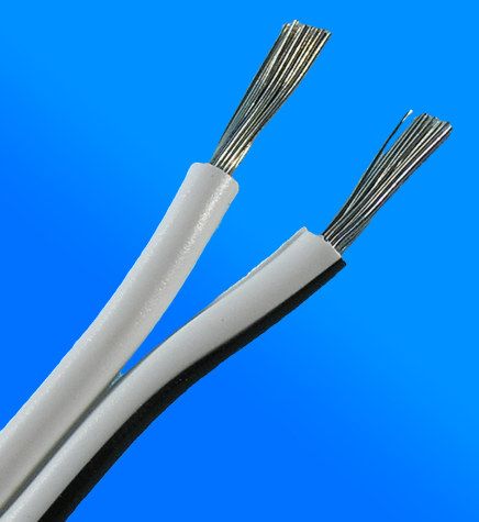 Double Sheathed Tinned CablesDouble sheathed cables with two tinned, colour coded insulated wires running inside a white outer sheath. Flat cross section. Sold/m, price/m.