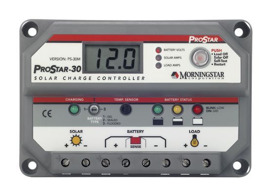 Morningstar ProStar Solar ControllerMorningstar's ProStar is the world's leading mid-range solar controller for both professional and consumer applications. Battery type selection and optional metering - denoted by M in model no.