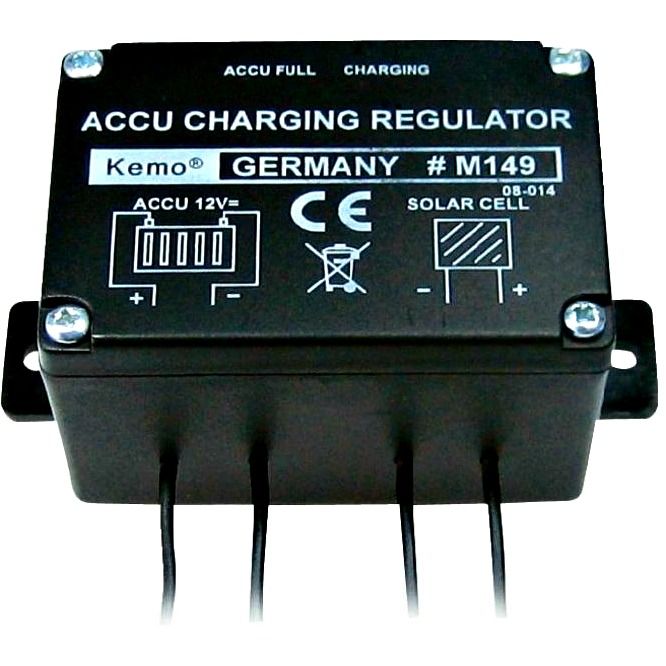 KEMO 5A Solar ControllerThis is a basic, no nonsense controller for use with panels up to 80W. Fit 10A fuse in line to panel. Contains diode.