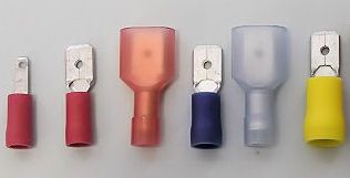Fully insulated Male Spade Crimp TerminalsFully insulated male spade crimp terminals have insulation that fully covers the connection.