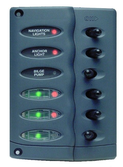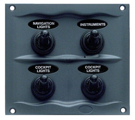 BEP Marine Backlit Splash-proof Switch PanelsBEP Contour splash-proof switch panel with backlit labelling. Stylish contour facia with toggle switches protected by waterproof bubber boots and label sheet for backlit [12V] switch labels. Red indicator lights. 206001 is supplied with individual in-line blade fuse-holders [accessible only from behind the panel] !57mm x 111mm, cutout 130mm x 91mm, intrusion 70mm.