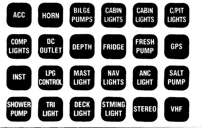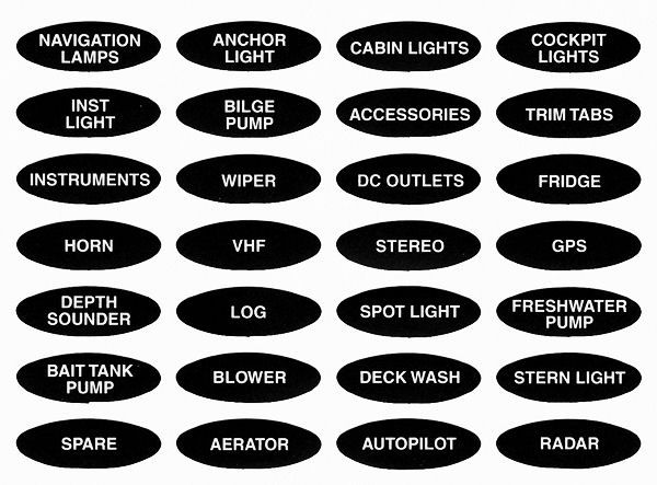 Labels for BEP Marine Splash-proof Switch PanelsLabels for BEP Marine Splash-proof Switch Panels.