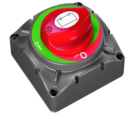 Blue Sea Systems Heavy Duty Single Pole Battery SwitchSwitches a single battery to a single load group. gnition protected—safe for installation aboard gasoline powered boats. Case design allows surface or rear panel mounting. Accepts two 4/0 AWG [95mm²] battery cables.