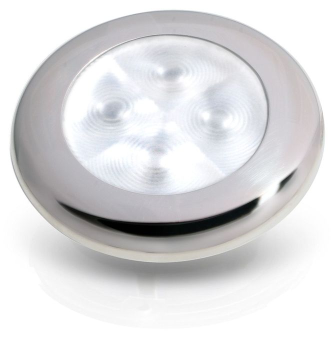 HELLA SLIMLINE Round LED Courtesy LightsHELLA Slimline round courtesy lights available in a number of colours with various trim ring options. Attractive, energy efficient lighting for interior and exterior use. Easy to scew almost anywhere on board.OD 75mm with plastic rim 72mm with stainless steel rim, fit into d50mm cutout, intrusion 13mm.