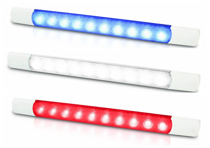 HELLA Surface Mount Courtesy Strip Lamps Without SwitchHella courtesy strip lamps have a low profile of just 10mm and draw only 1.5W. Fully waterproof, 5Y warranty, available in white, warm white, red and blue. 285mm x 25mm.